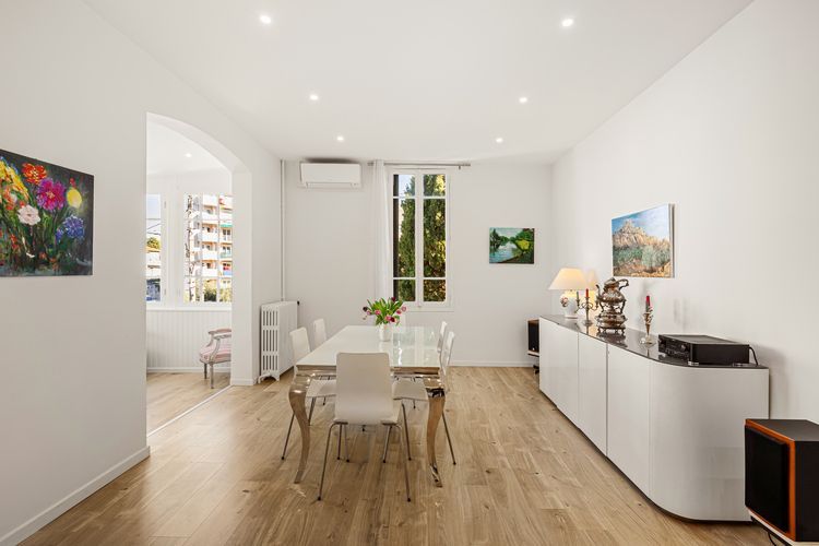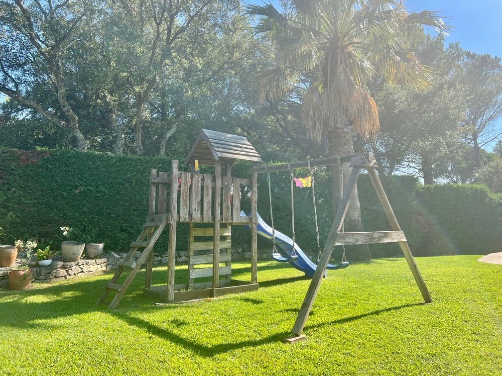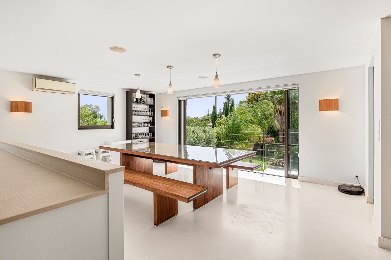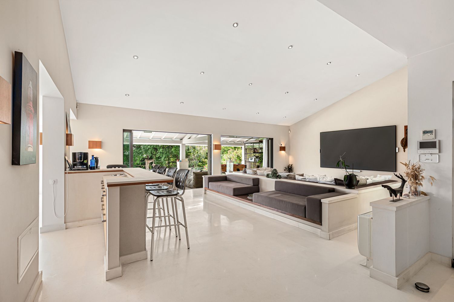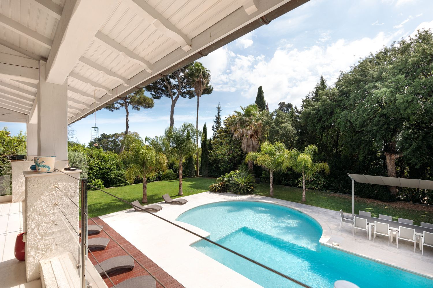 À seulement 400 mètres de la plage, cette propriété rénovée avec goût est nichée au cœur d'un magnifique et grand jardin arboré d'oliviers. Elle comprend 5 chambres et 2 appartements d'invités. La propriété est divisible et dispose d'un permis de construire. Surface habitable : 267 m², superficie du terrain : environ 5 600 m².